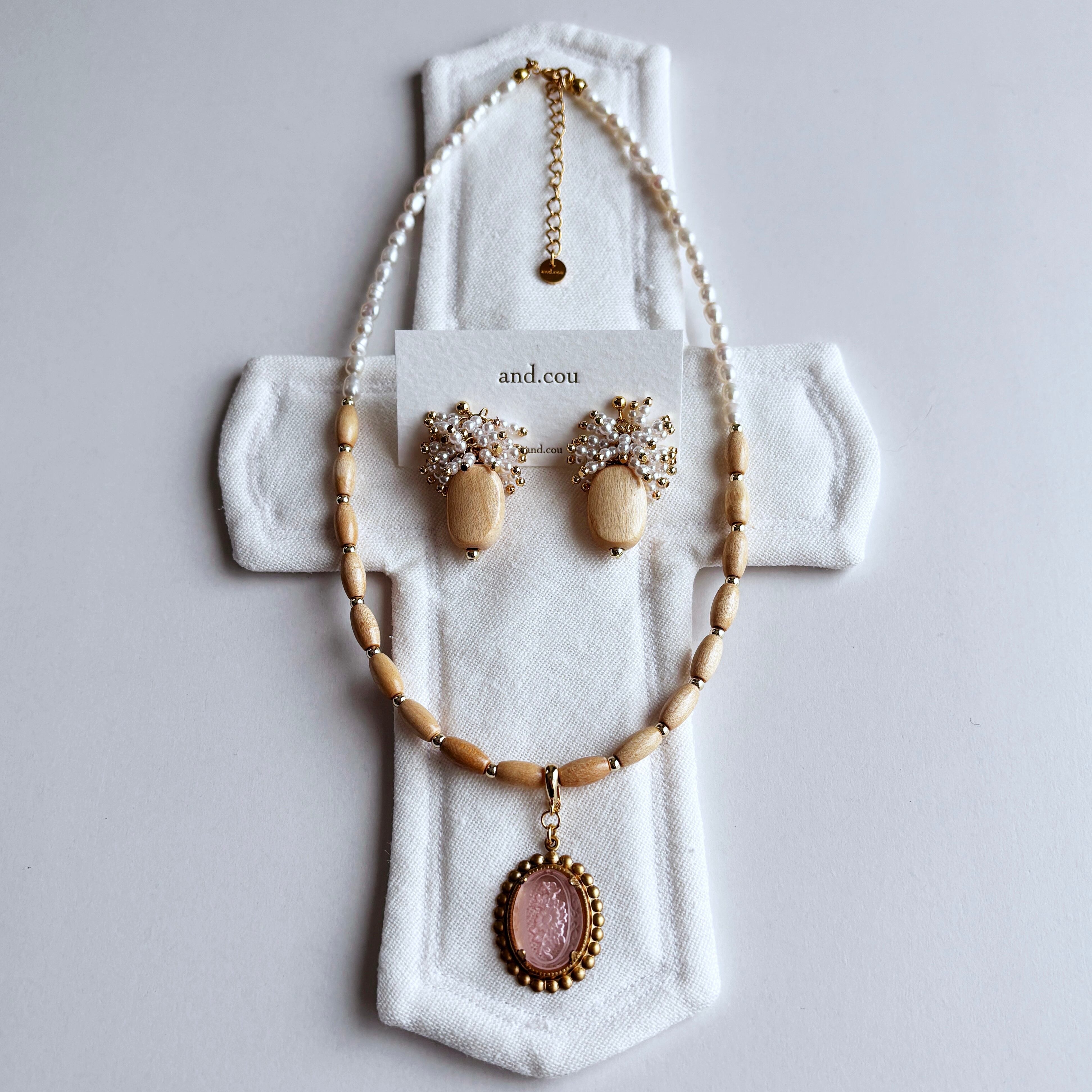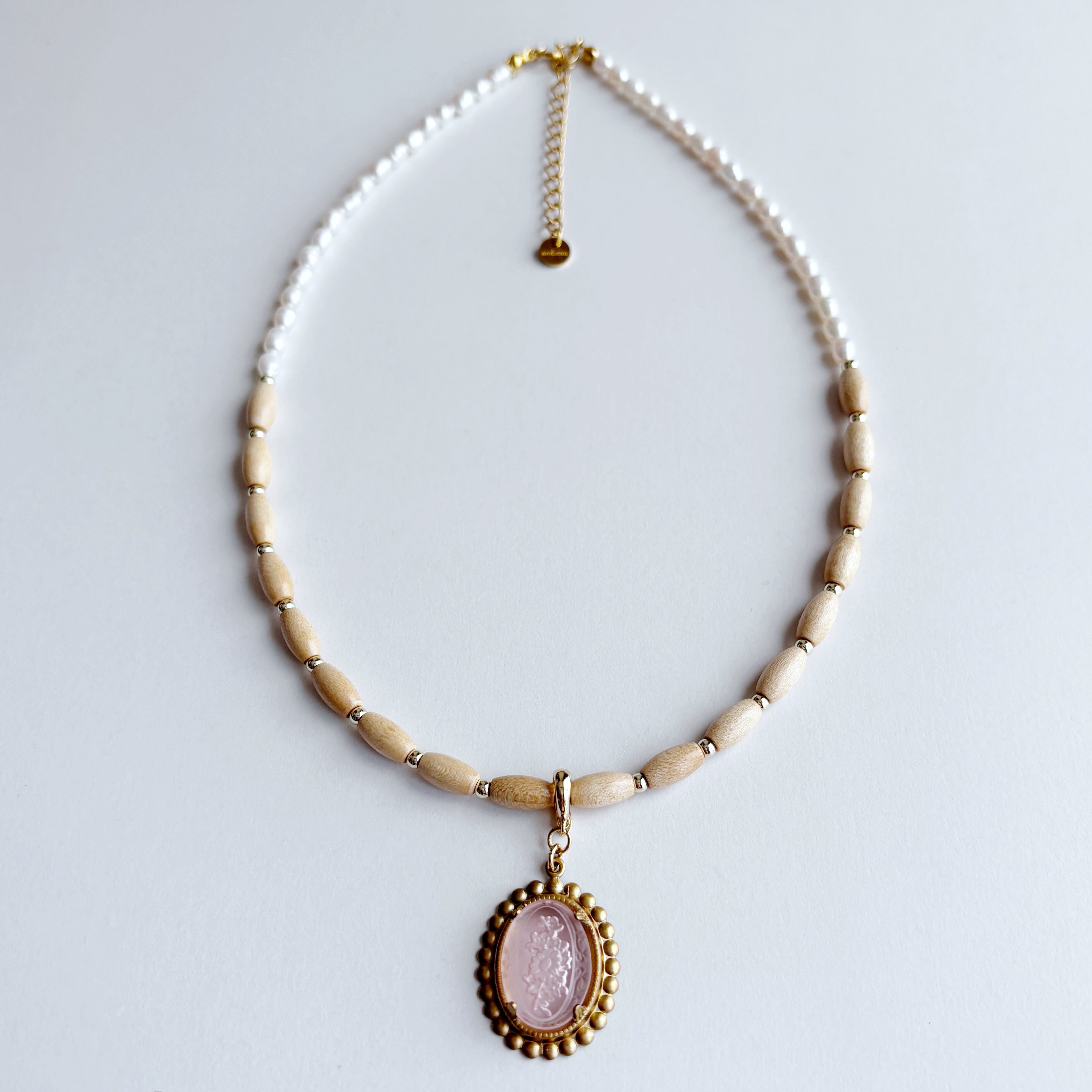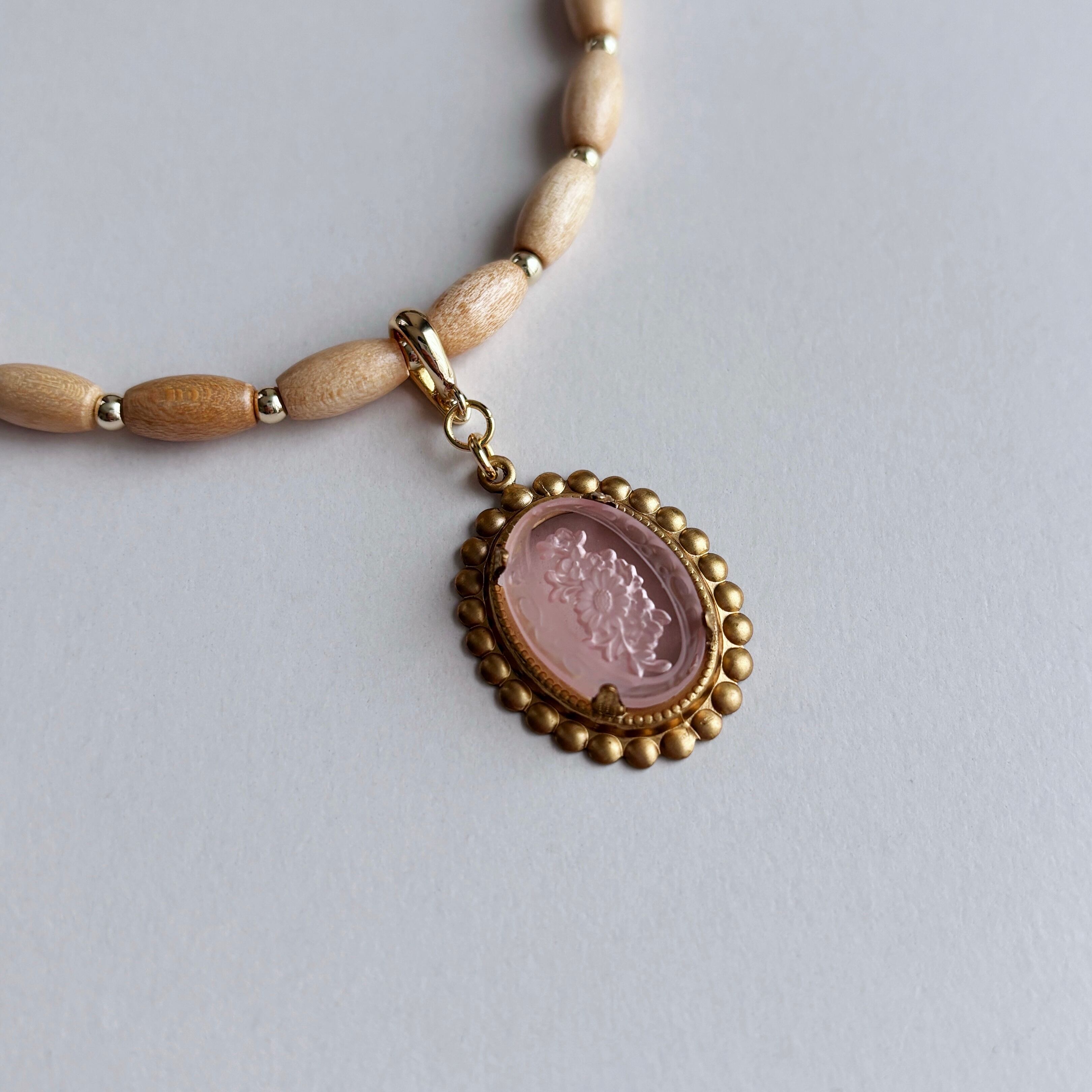 necklace charm*vintage Intaglio floral / vintage glass stone