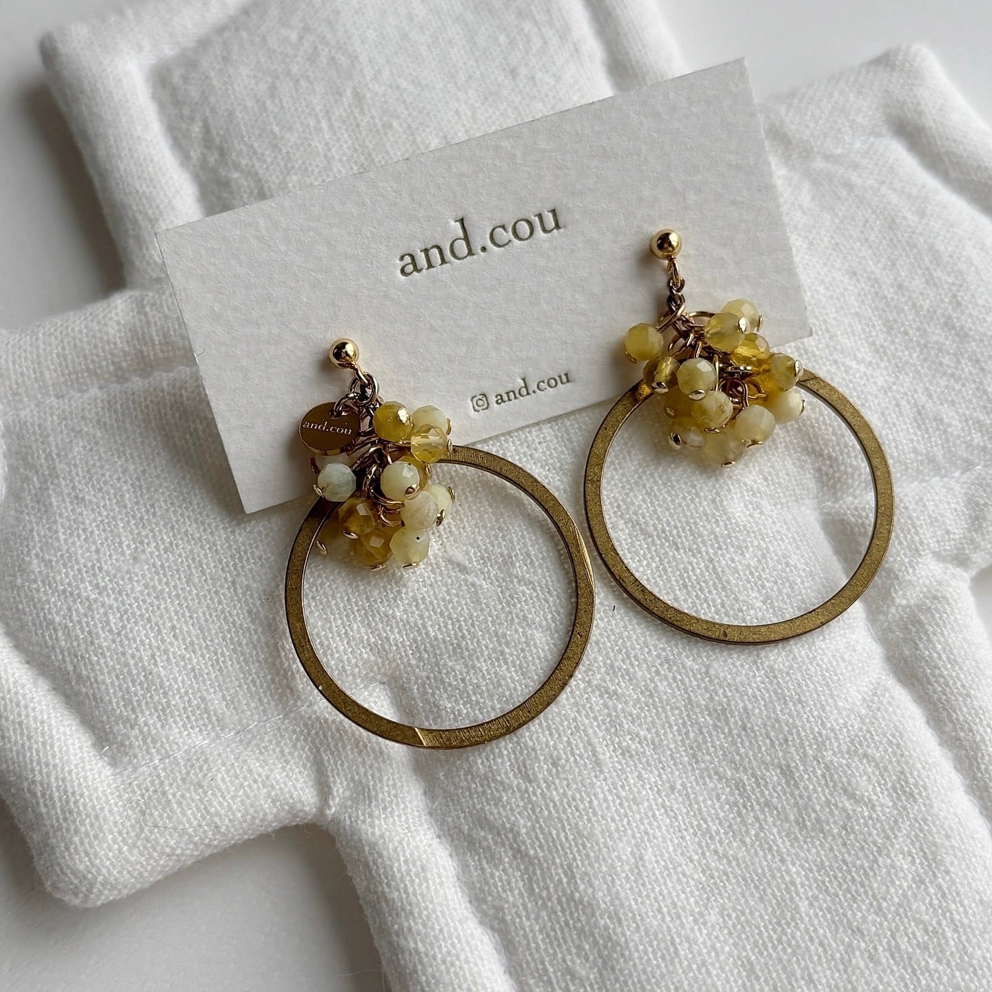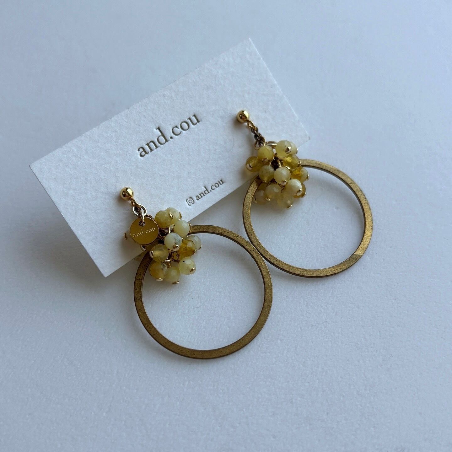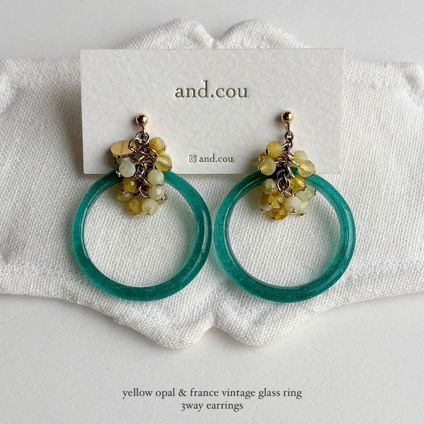 yellow opal & france vintage glass ring 3way earrings アレルギー対応