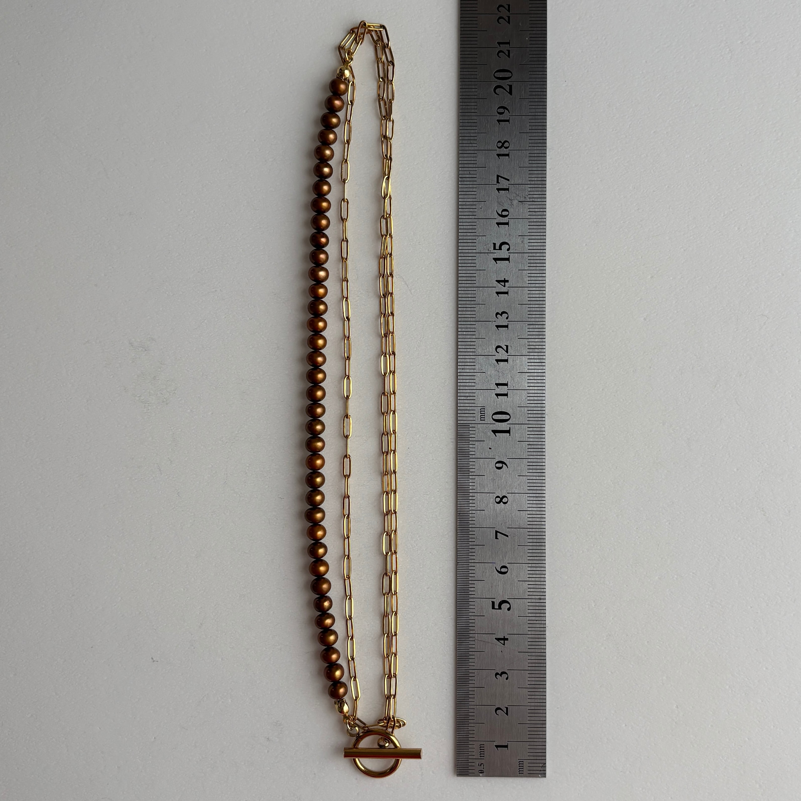 チョコレートゴールドに調色された淡水パールと