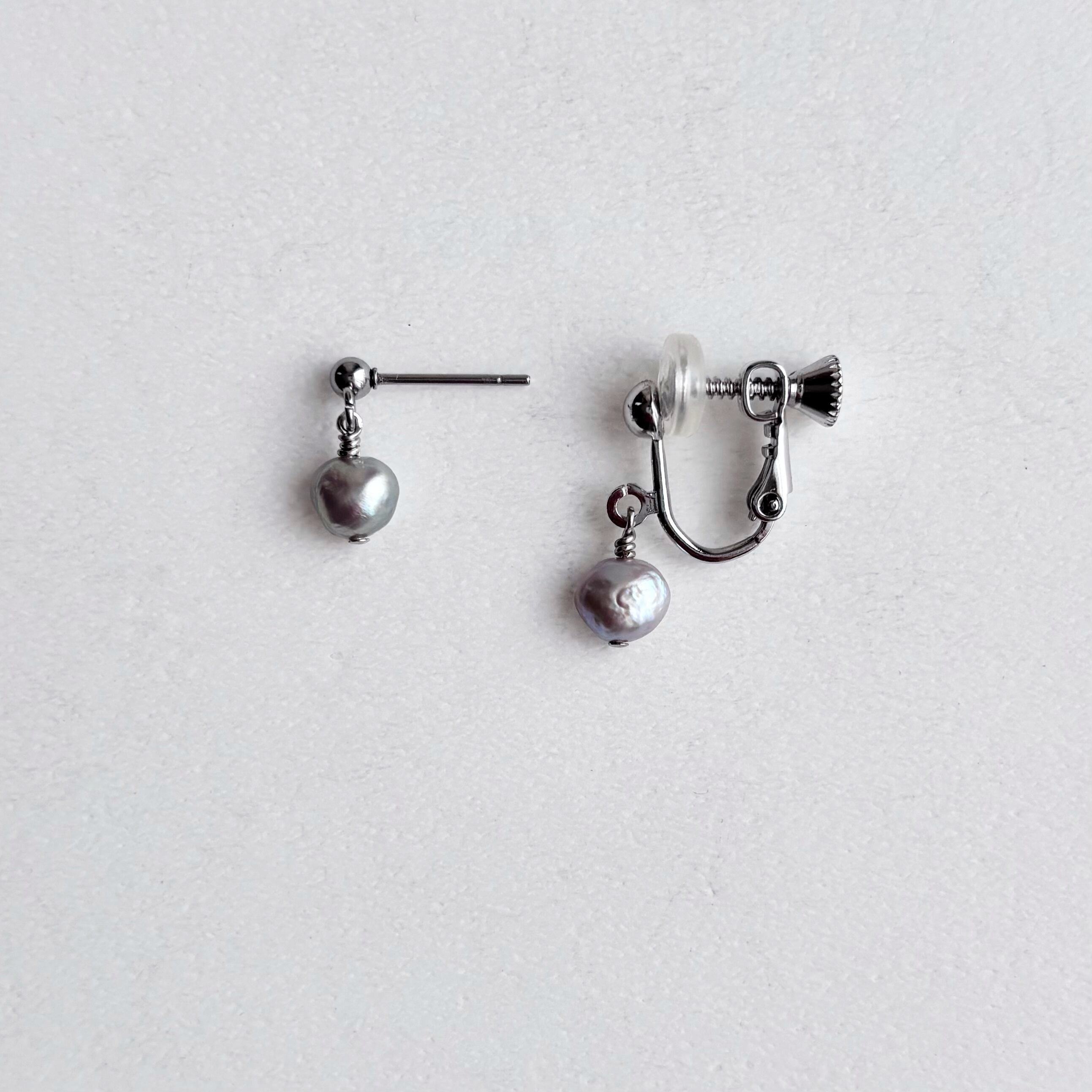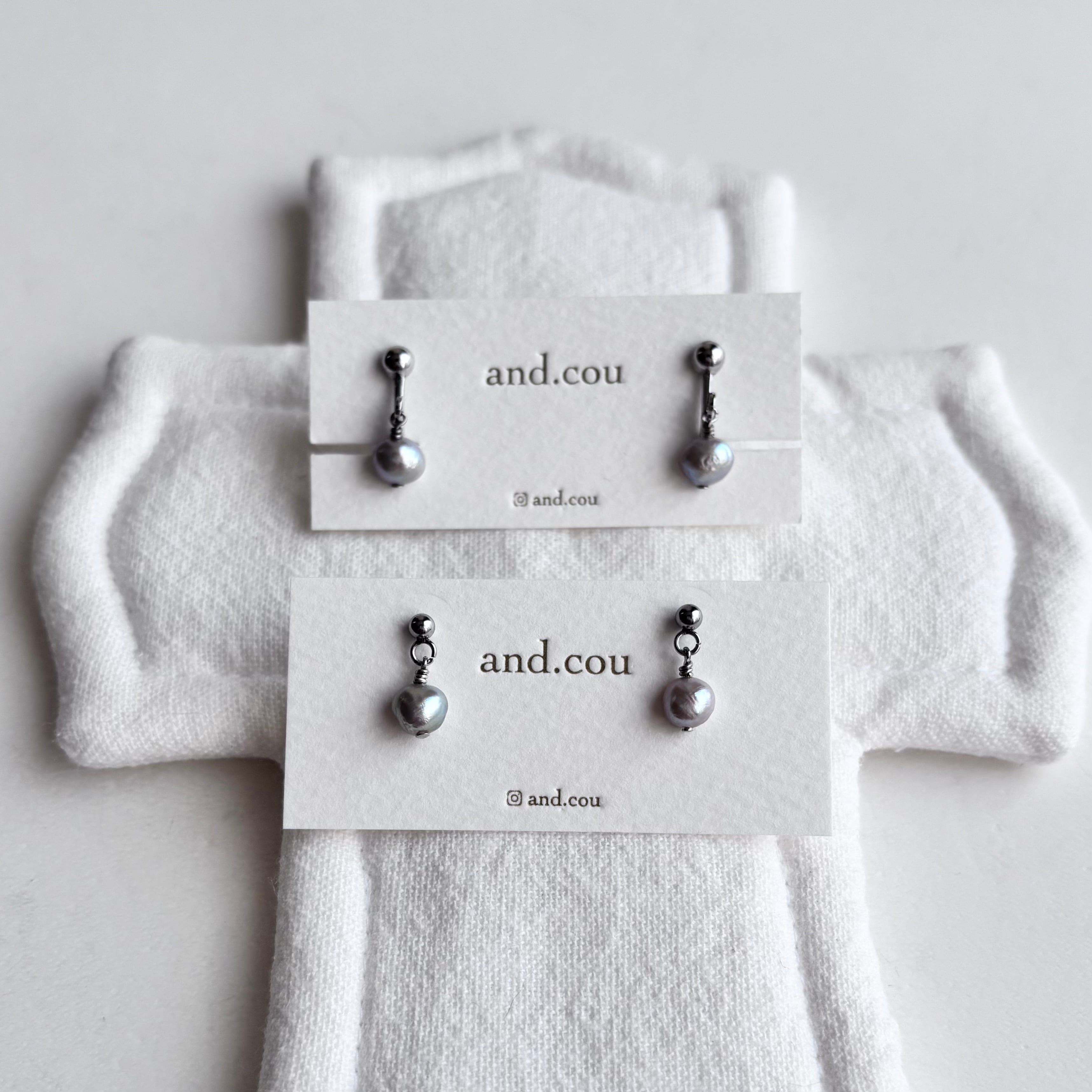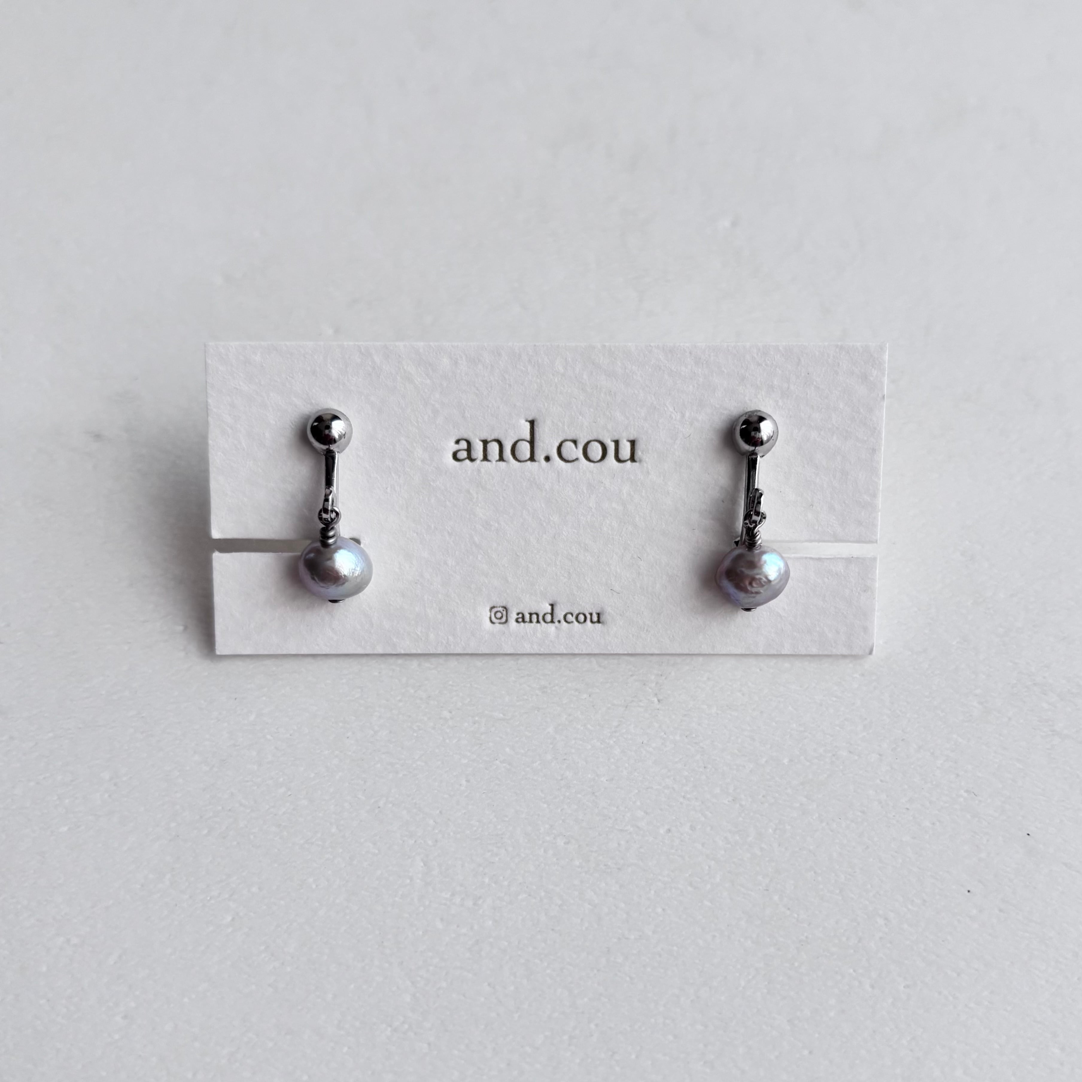 ひと粒パールの耳飾り light gray freshwater pearl アレルギー対応