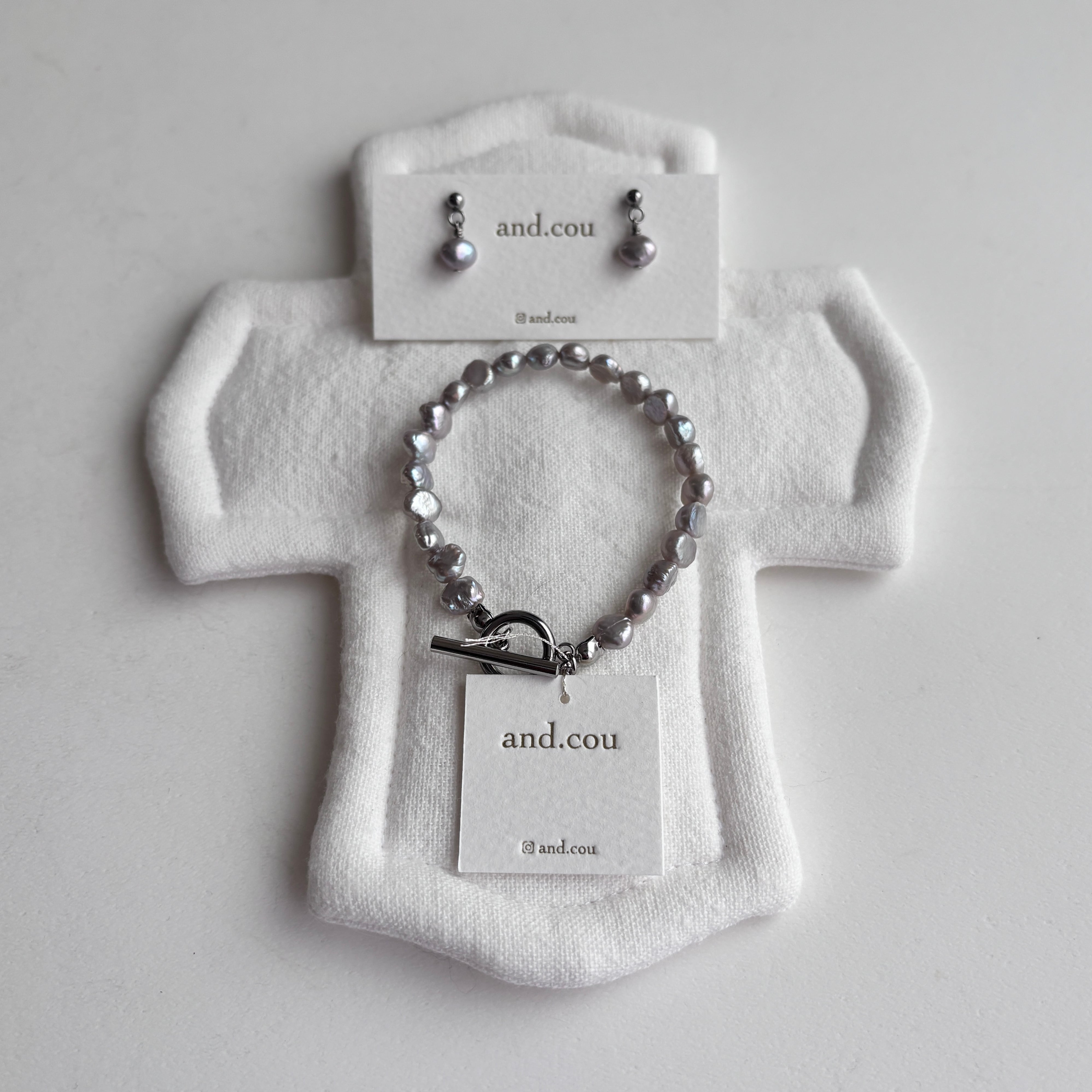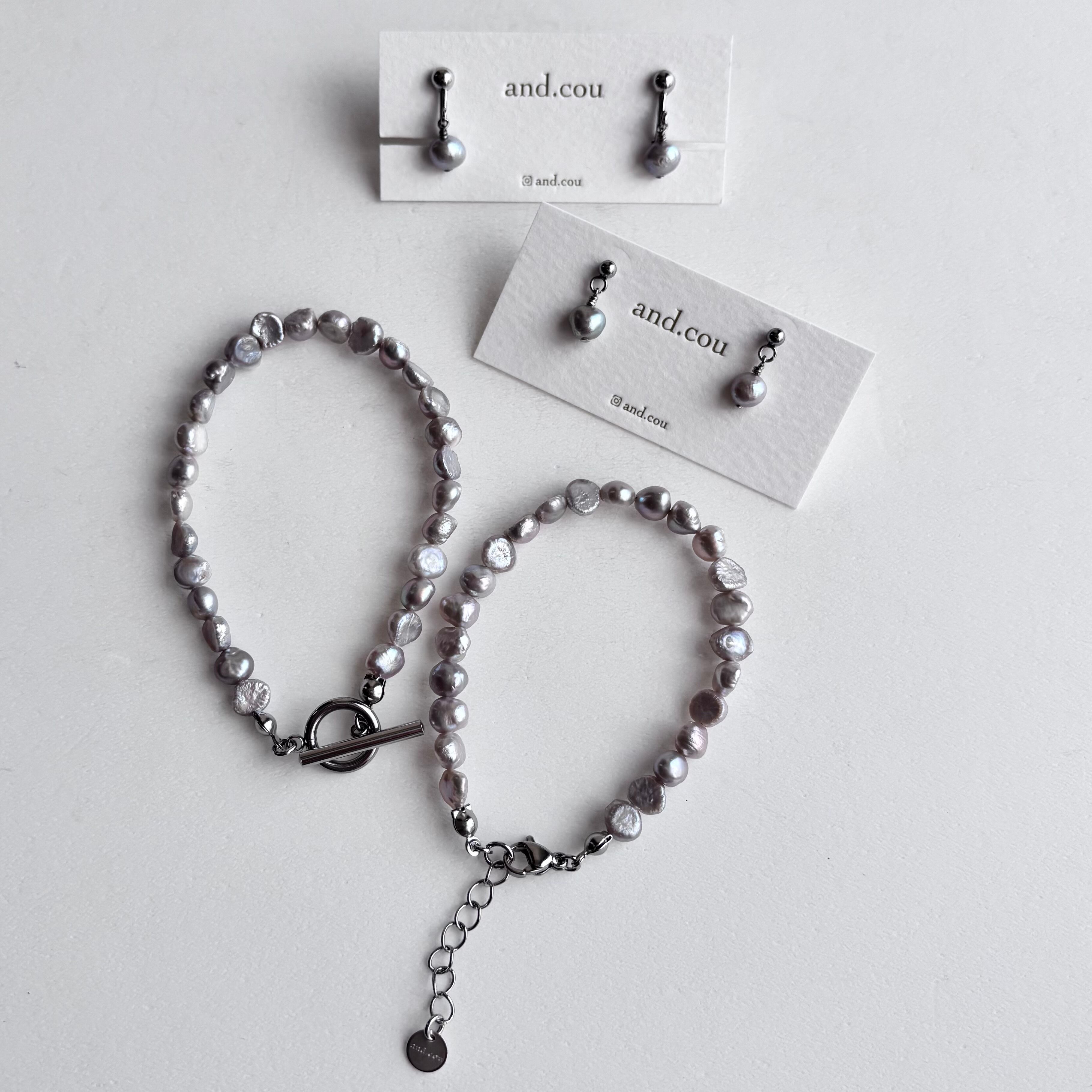 ご好評いただき、sold outとなりましたネックレスのパールを使って耳飾りとブレスレットを仕立てました。