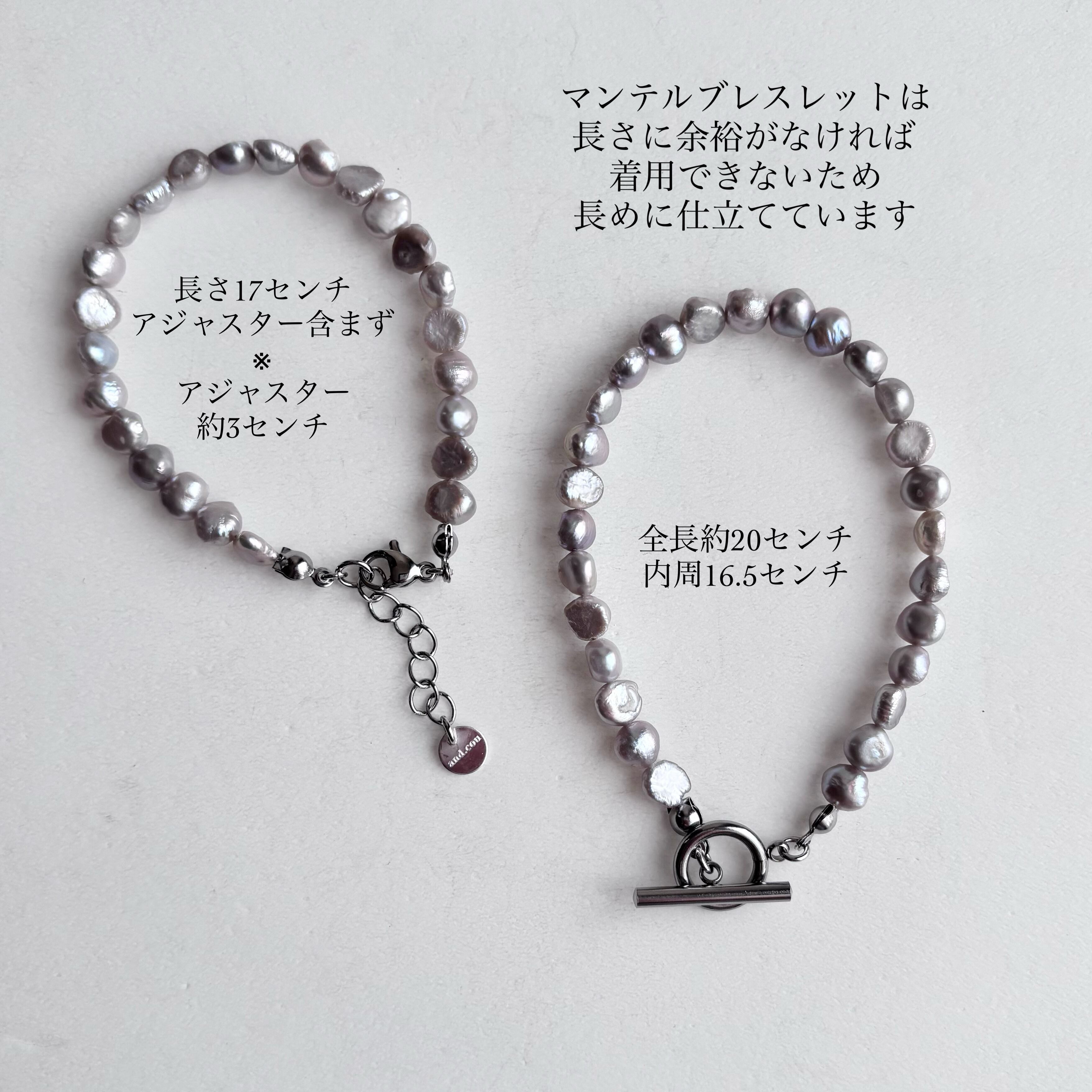※マンテルブレスレットは、サイズに余裕がなければ留め具をつけることが難しいため、長めに仕立てています。