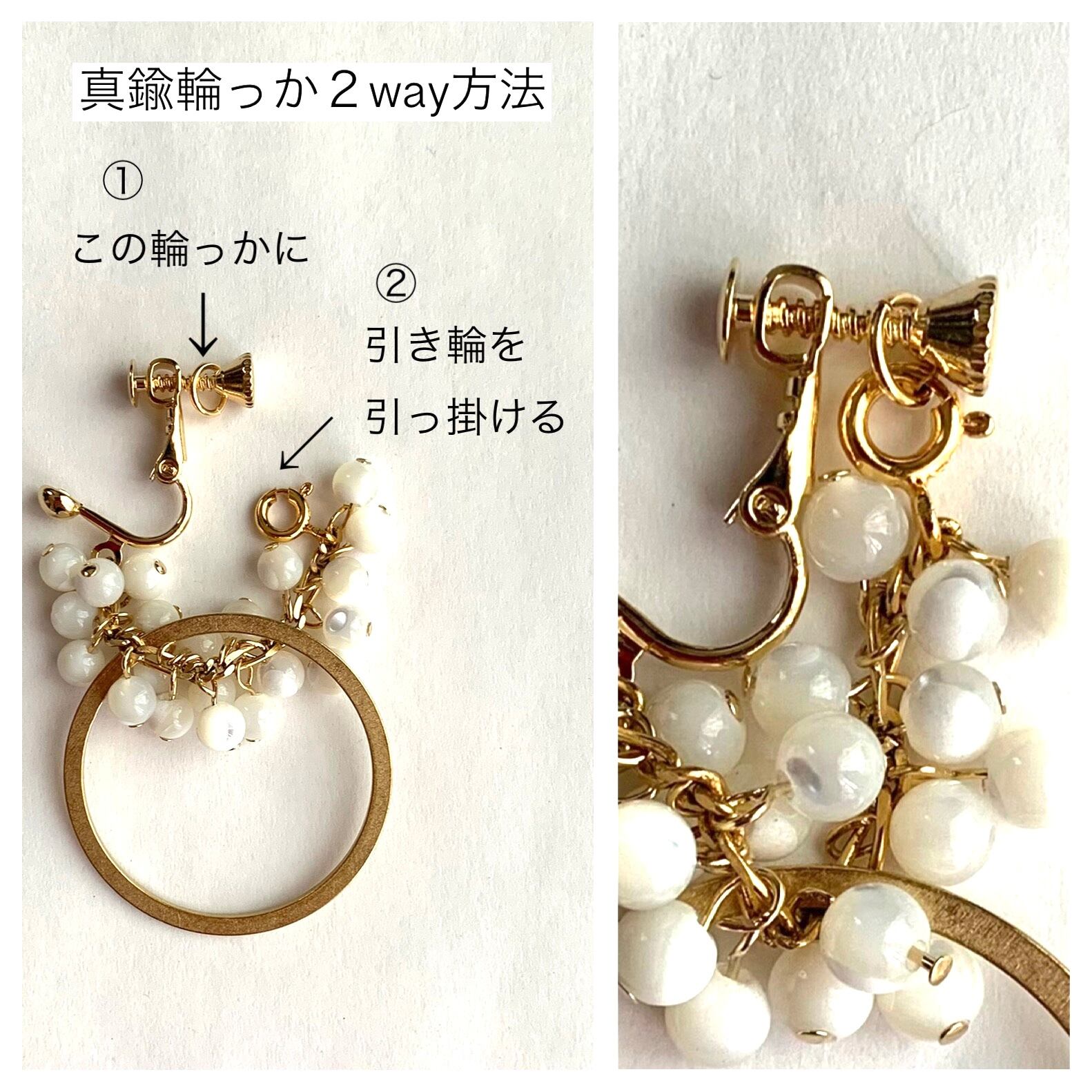 beige/ヴィンテージチェーンを使ったマザーオブパールと真鍮輪っかの2wayピアス/イヤリング アレルギー対応