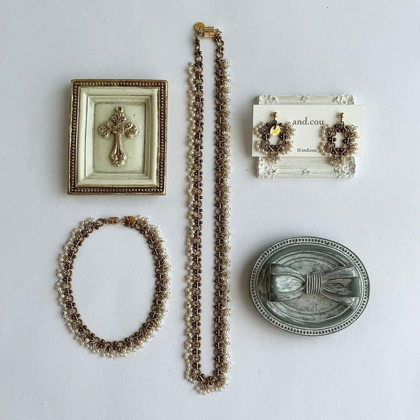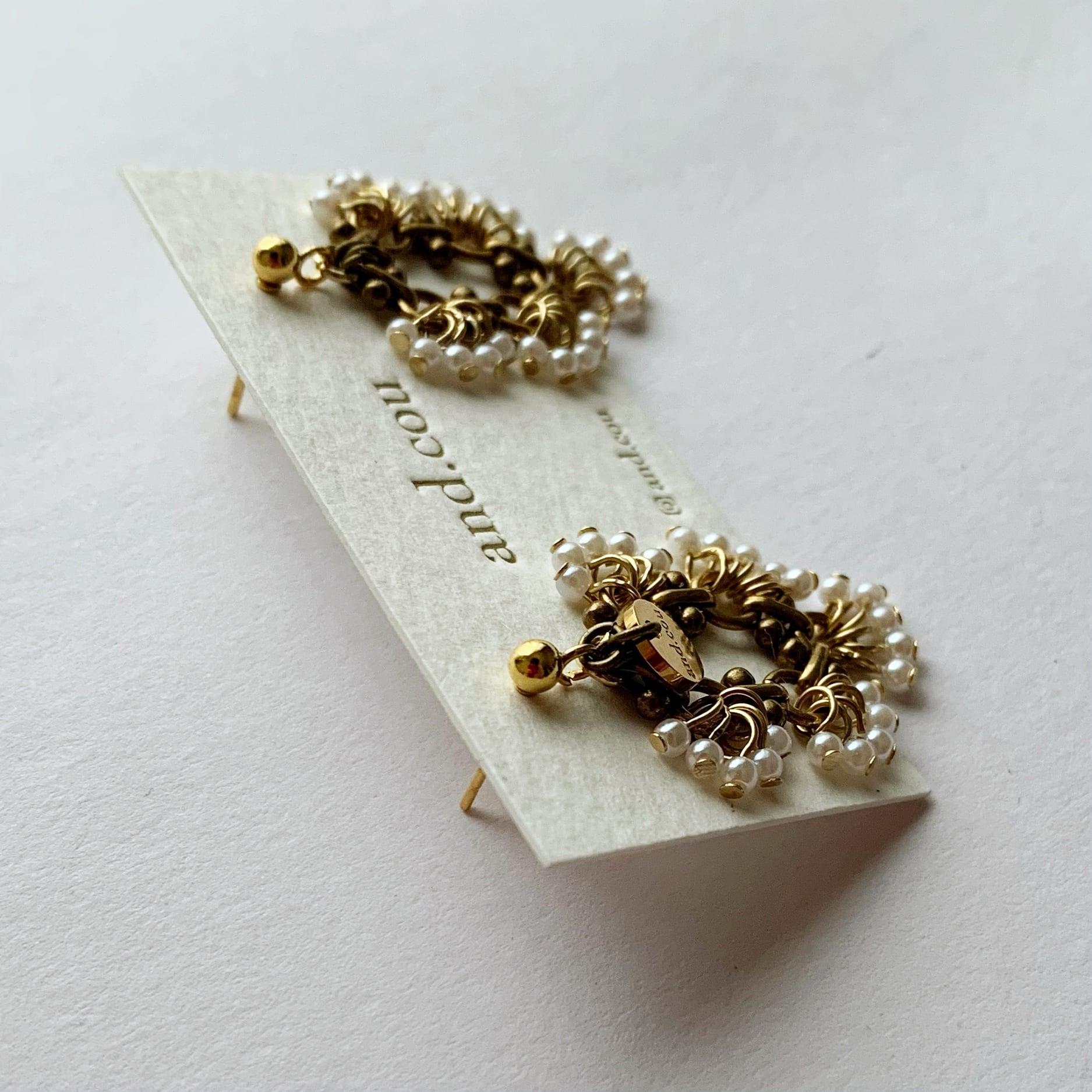 saaya / vintage チェーンとベビーパールビーズの耳飾り アレルギー対応