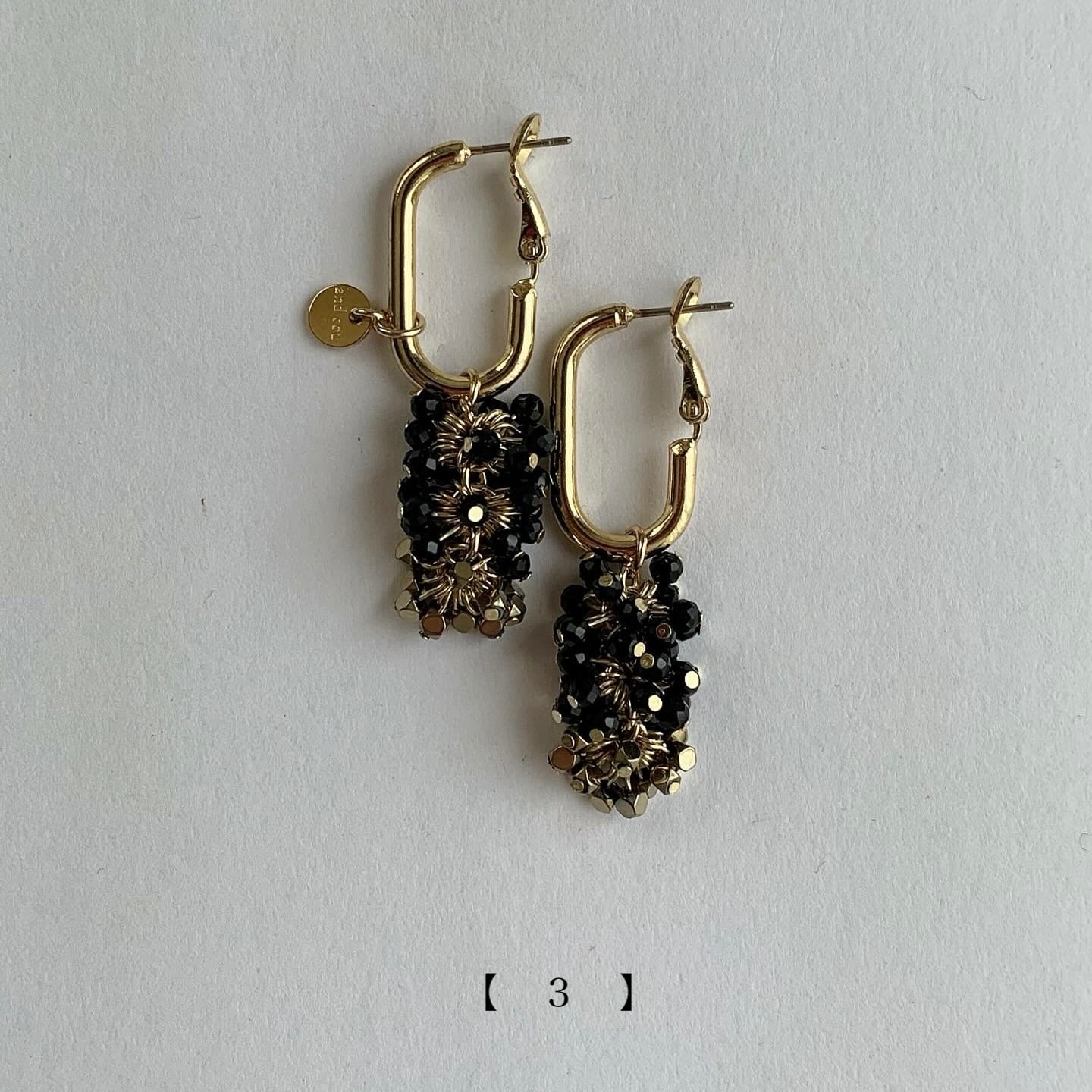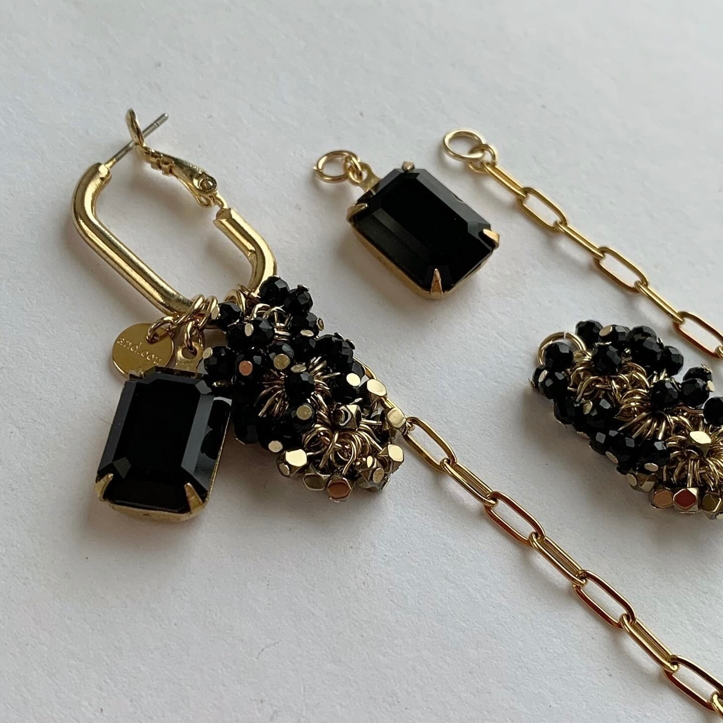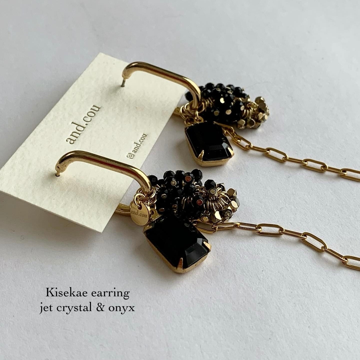 Kisekae earring / jet crystal & onyx 1部アレルギー対応