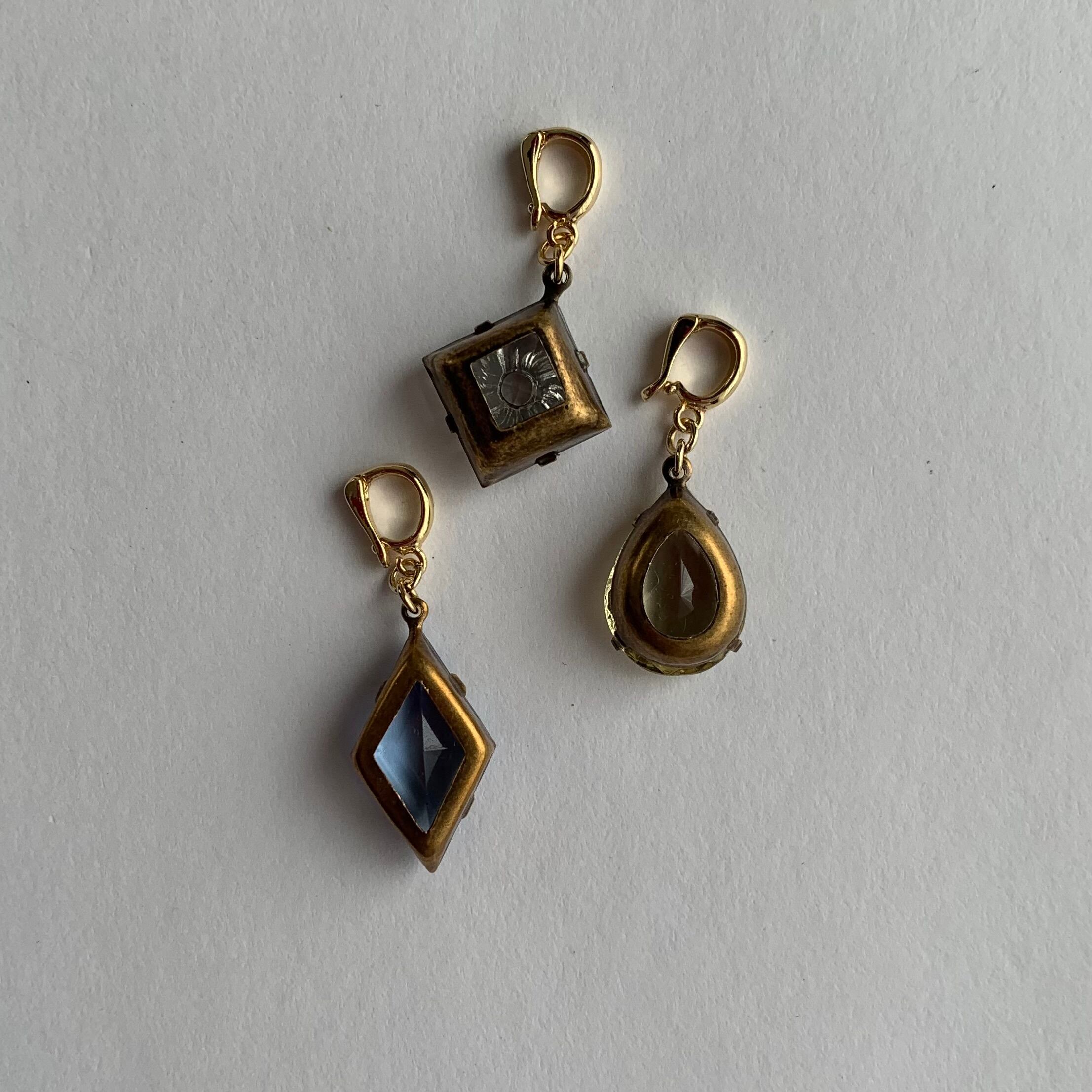 ※写真の【別ページにて記載】と書かれている、しずく形とひし形のチャームはsold outとなりました。